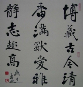 丁君六岁学书,与之结下不解之缘,初宗唐楷,尚欧而颜,日课千字.历数年而不辍,遂奠楷书根基。少年而有书名。及长转博,先是浸淫于汉隶碑版之中,继而迷恋于《兰亭》与《书谱》之间。数十年来,平时虽公务繁亢,业余则寸阴是竞。...(详细介绍)